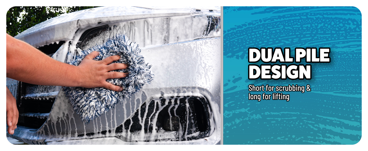 • DUAL SURFACE WASH PAD (MIC892): Dually Wash Pad features a dual sided microfiber design that allows users to switch between surfaces quickly, making it ideal for washing paint, clear coat, glass, wheels, and exterior trim.
