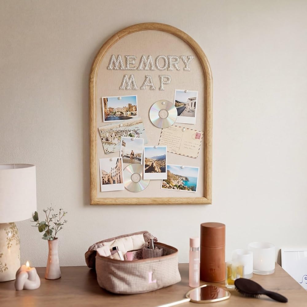 Natural Pine Frame: this arch cork board is crafted from pine, highlighting the wood's natural grain and warm tones; The neutral color palette complements any home style, from modern minimalist to rustic, adding a touch of rustic charm to any space