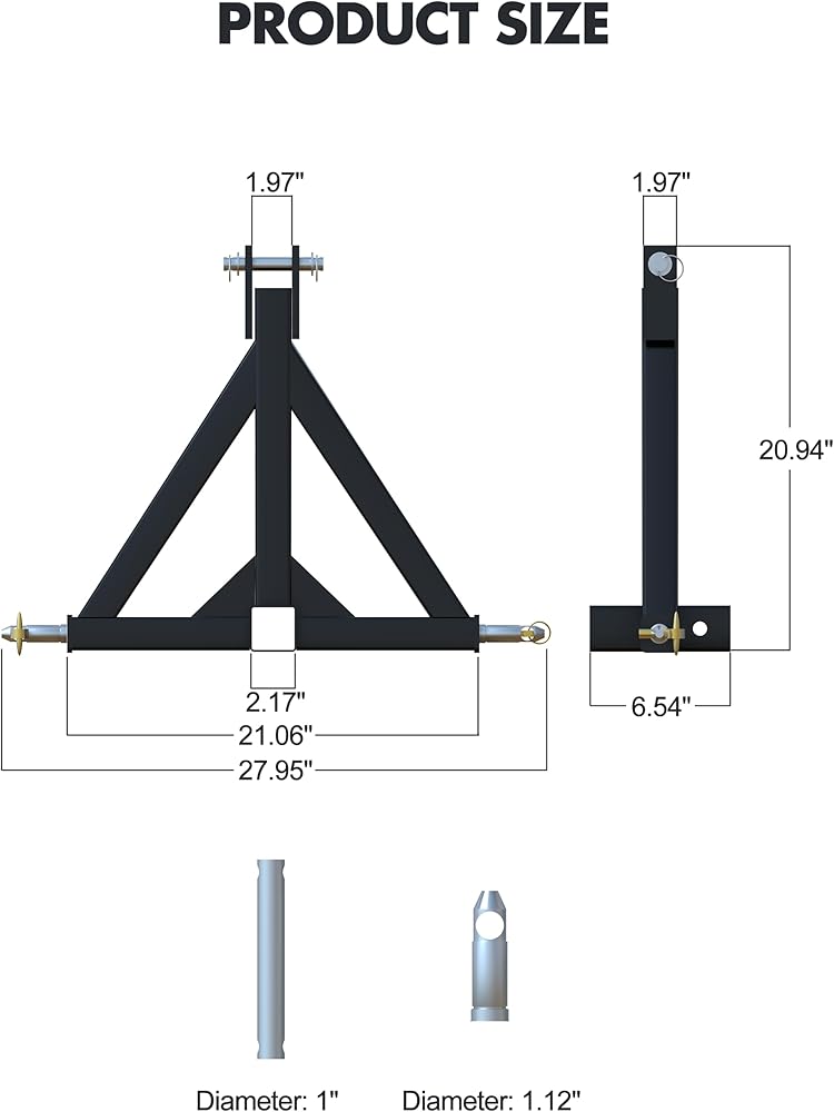 [Compatibility] - KYBOLT 3 Point 2" Hitch Receiver is compatible with Category 1 Tractors like Kubota, BX, LM25H, WLM Tractor, NorTrac, Yanmar, Kioti, Cat, John Deere and other tractors which are commonly used in heavy-duty work in the industrial and construction industries. Noted: It's not fit John Deere IMatch.