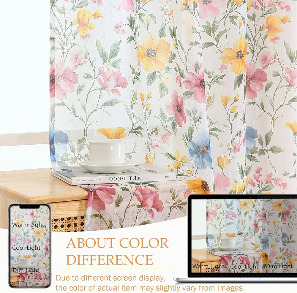 Ideal Home Decor: These watercolor floral sheer curtains effortlessly complement modern, minimalist, cottage, farmhouse, bohemian, Scandinavian, and coastal decor. They shine in living rooms, bedrooms, dining areas, sunrooms, girls room and nurseries, infusing every space with an inviting, dreamy, and fresh ambiance that elevates your home's aesthetic. Pair with blackout curtains for full light control, or use alone for a breezy, open feel