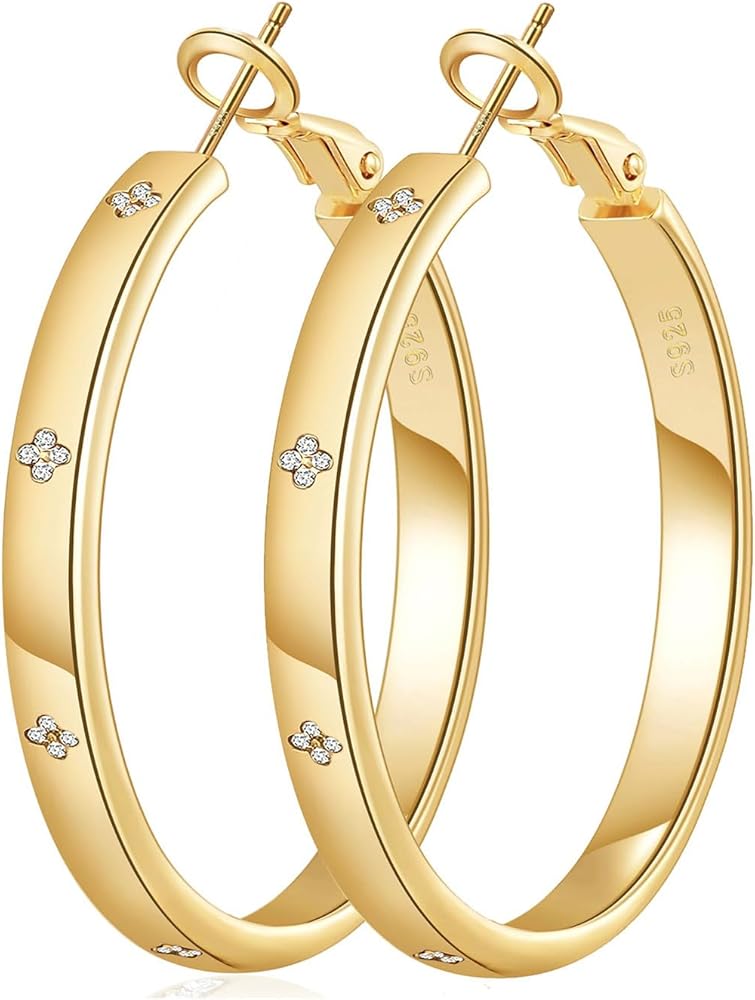 ✨ Unique Design:These uniquely designed large hoop earrings for women feature distinctive patterns adorned with sparkling cubic zirconia stones. We've transformed this classic "lucky" into a piece of everyday wearable 925 sterling silver earrings, making luck a seamless part of your style. The cubic zirconia on the silver hoop earrings maintains its enduring sparkle, ensuring you radiate elegance day or night, whatever the occasion.