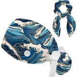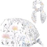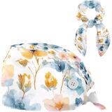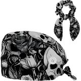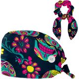 - Surgical cap with bow hair scrunchy design offers dual functionality - adjustable fit and fashionable workplace accessory.