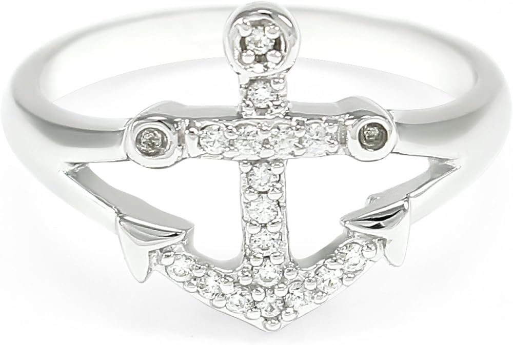 A stunning sterling silver anchor ring with CZs, designed exclusively by our company. The ring is hand-crafted and polished to a dazzling shine. Please be aware that the two sides of the anchor are hollow.