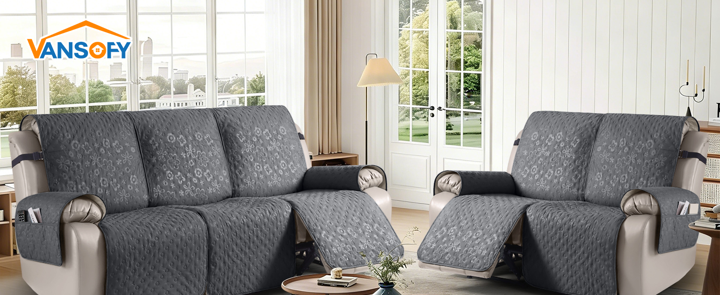 QUADRUPLE NON-SLIP DESIGN MINIMIZES MOVEMENT: Engineered with triple elastic straps for the headrest, lumbar and footrest, plus non-slip particles across the reverse side of the product, this recliner Sofa covers delivers four-point stabilization to prevent shifting