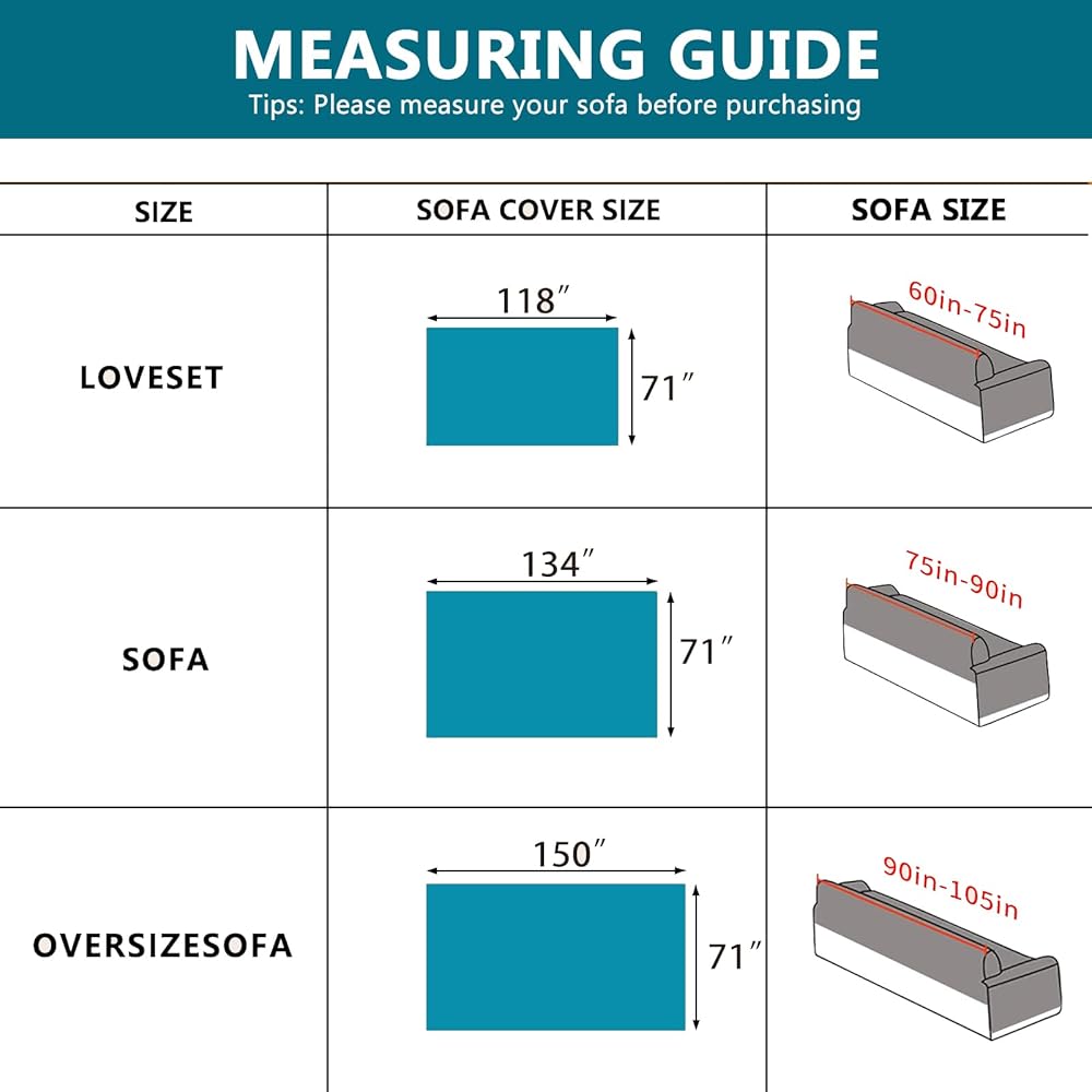 71" x 134": Fit for 3 seat or small 4 seat sofa