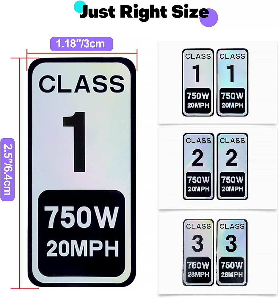 Electric Bike Class 3 Decal set! Perfect for ebike and Powersports enthusiasts, this vibrant colorful vinyl sticker pack includes 4 PCS of durable, weather-resistant decals. Each sticker measures 2.5 x 1.2 inches, making them ideal for adding a bold,
