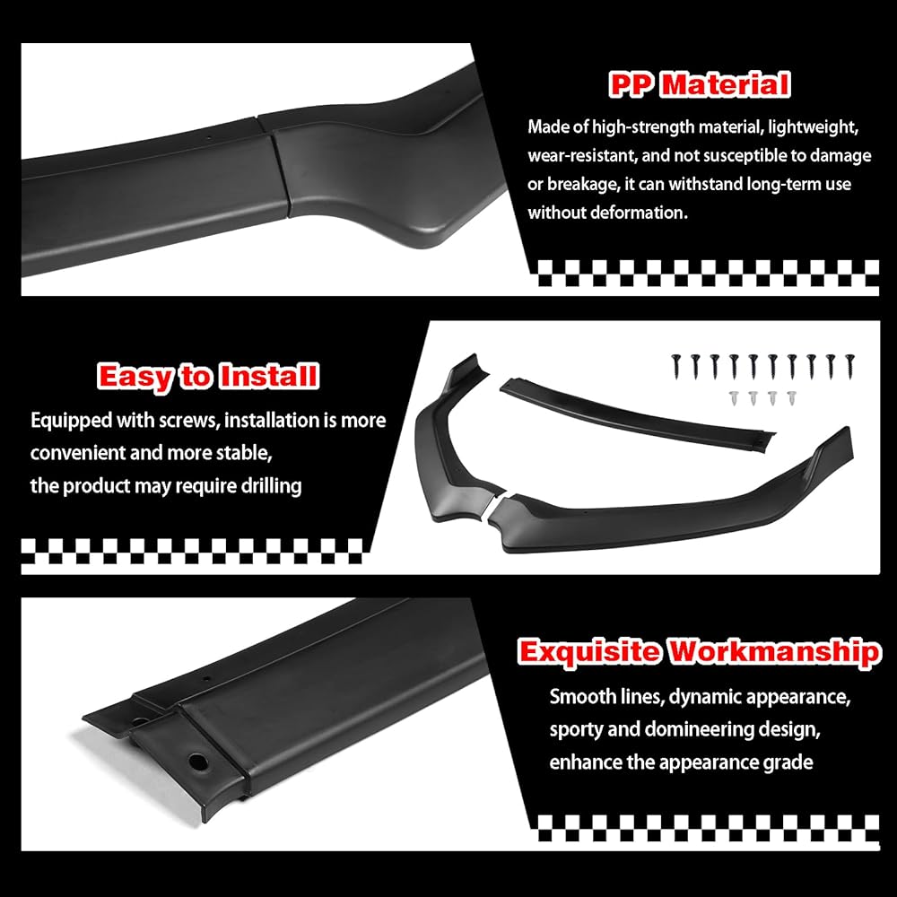 PRODUCT MATERIAL: This front lip spoiler is made of durable, lightweight ABS plastic,it is heat-resistant, corrosion-resistant and impact-resistant, suitable for harsh environments and has a long service life