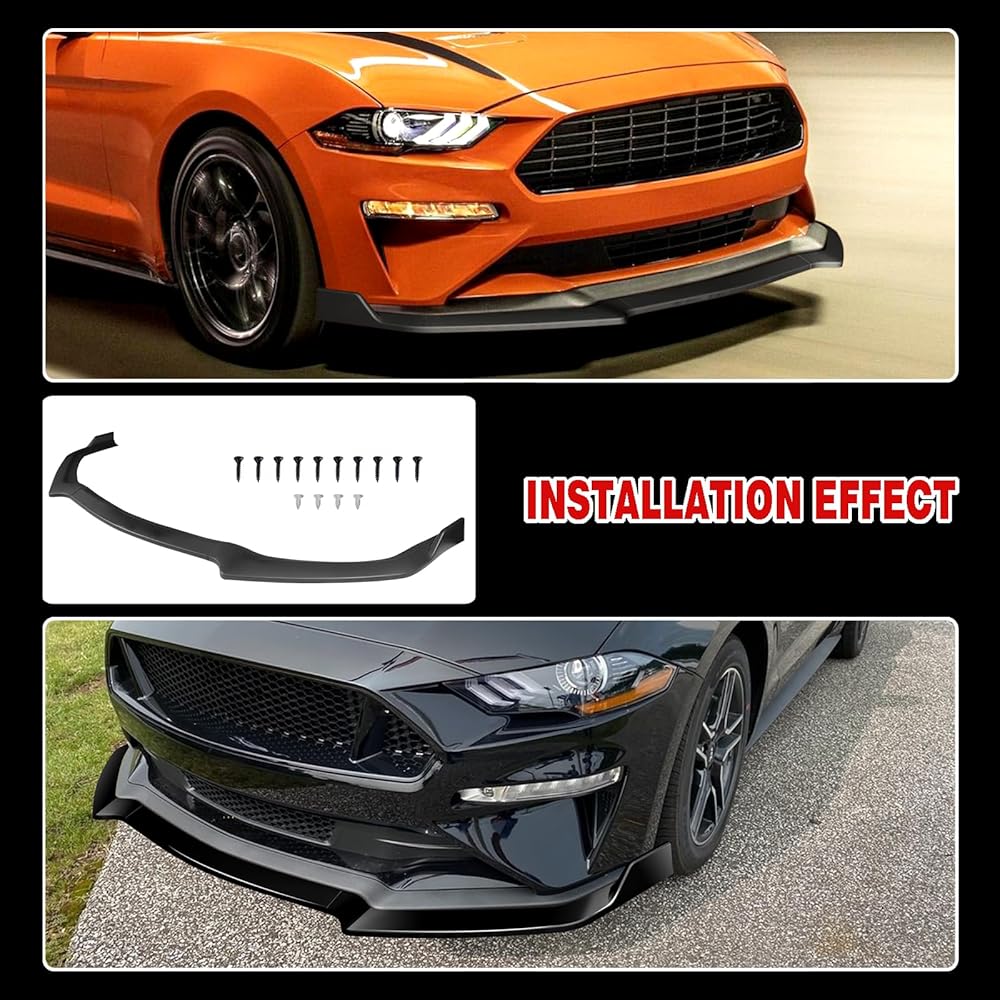 Front Bumper Lip Compatible with 2019-2020 for Ford Mustang Coupe Bullitt 2018-2023 for Ford Mustang Convertible EcoBoost/EcoBoost Premium/GT Premium Matt Black Front Lip