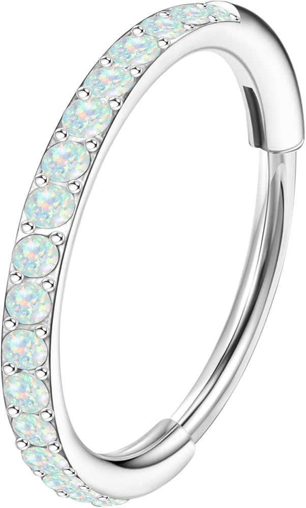 MJust Opal Nose Hoops for Women Men - 316L Surgical Steel Hinged Nose Rings 20G Clicker Septum Nose Ring Lip Helix Cartilage Hoop Earring Daith Rook Conch Body Piercing Jewelry 6MM 7MM 8MM 10MM