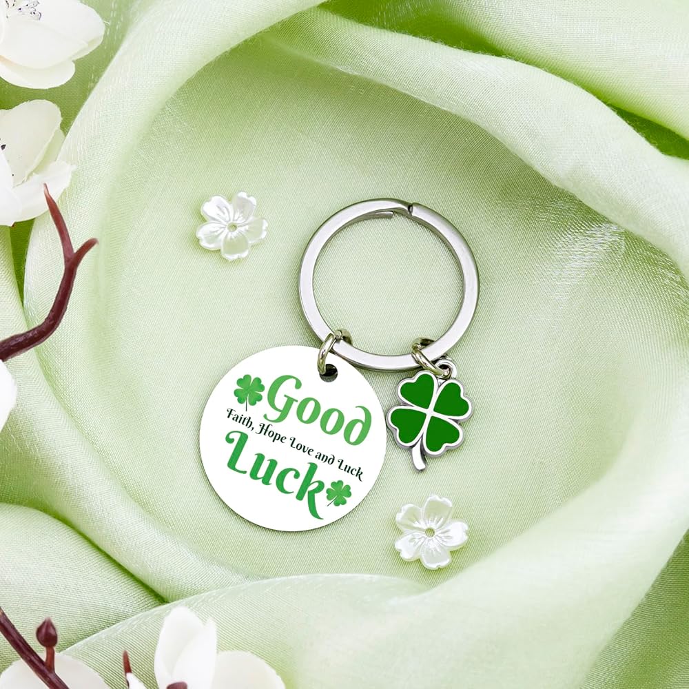This stainless steel keychain centers on "luck," perfectly blending practicality and emotion. The main body is made of stainless steel with a polished surface, offering a delicate touch and rust resistance—daily cleaning only requires a dry cloth. The classic four-leaf clover pattern, paired with laser-engraved text "Good Luck" and "Faith, Hope, Love and Luck," conveys the beautiful meanings of faith, hope, love, and luck. It is lightweight and portable, easily hung on keychains, backpacks, or phone lanyards. Suitable for direct gifting on Saint Patrick's Day, birthdays, or anniversaries.