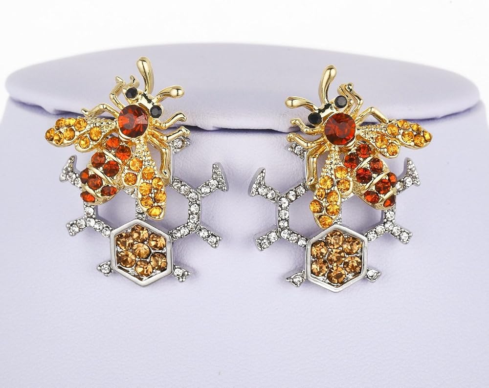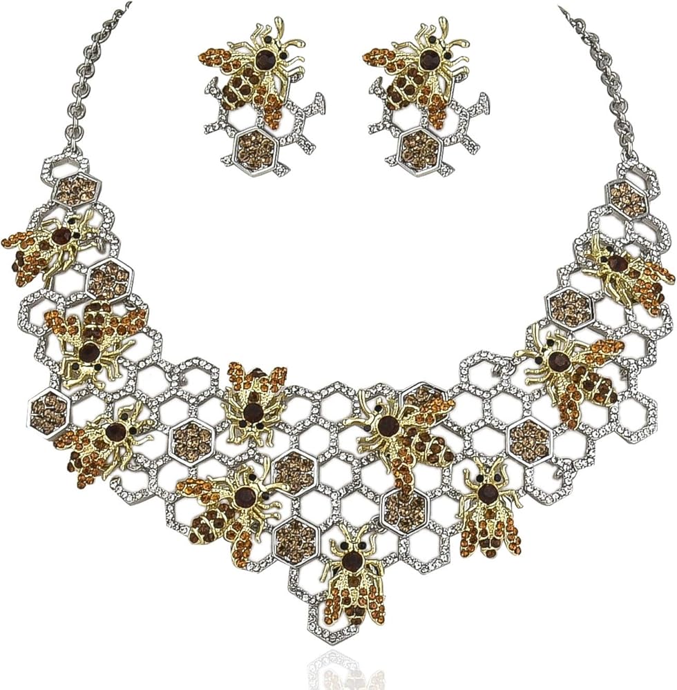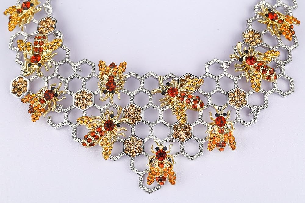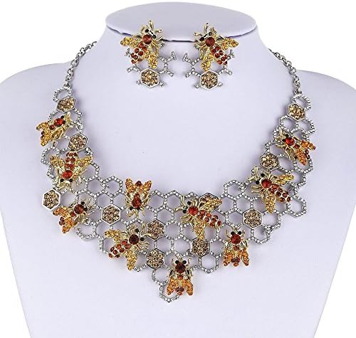 You are looking at gorgeous bumblebee necklace set. Sparkling first class Golden, Cinnamon, Black, and Clear Genuine Austrian Rhinestones are set on beautiful Silver Tone metal. This set shines a lot! It is perfect for any special occasions. Thanks for looking!