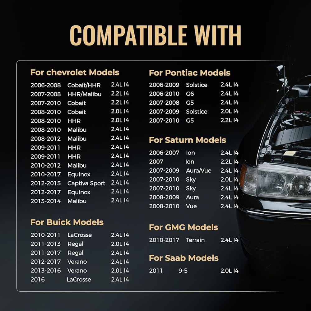 Vehicle Fit: Works with 2012-2015 Chevy Captiva Sport, 2006-2010 Chevy Cobalt, 2010-2017 Chevy Equinox, 2006-2011 Chevy HHR, 2007-2014 Chevy Malibu, 2010-2011 LaCrosse, 2011-2017 Regal, 2010-2017 Terrain, 2007-2010 G5/G6, 2011 Saab 9-5, and 2007-2010 Sky Vue