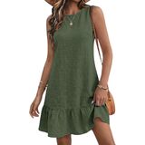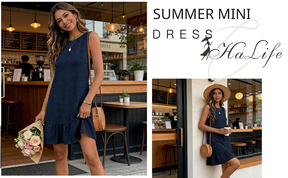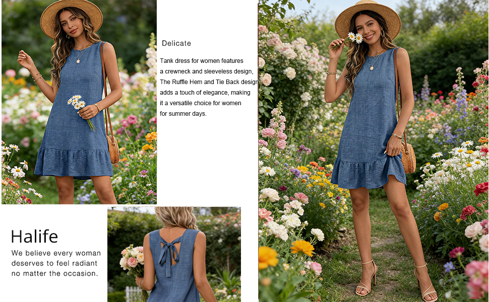 Features: Summer mini dress; crewneck tank dress; tie back dress; ruffle hem sleeveless dress; shift dress; flowy beach dress; solid color cute sun dresses. loose-fitting short dress will makes you look more fashion and charming