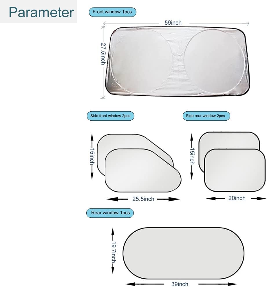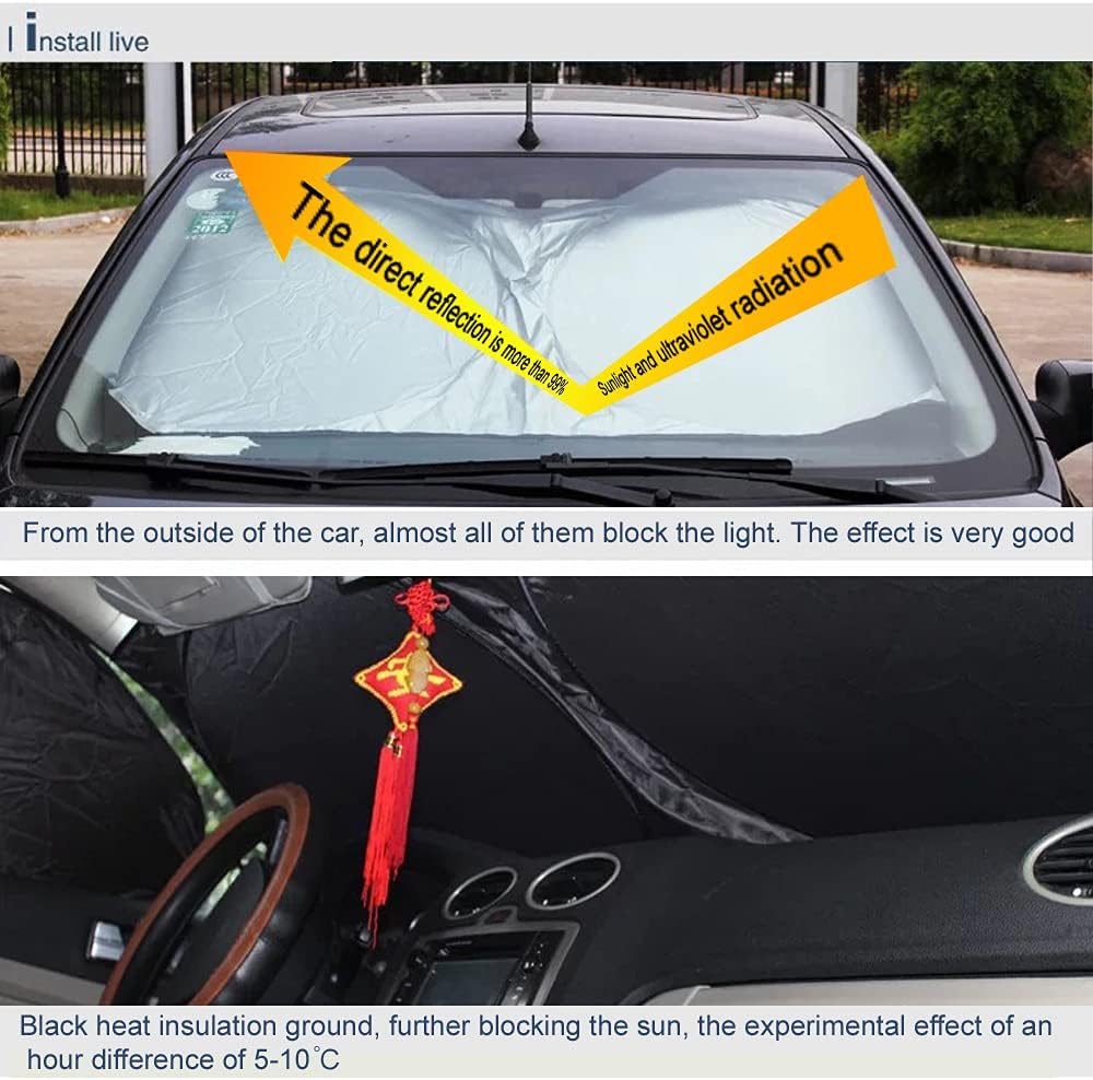 【Good shielding effect】It adopts multi-layer protective material, with reflective silver paste on the surface, which can reflect most of the sunlight. The inner layer is covered with black, which can block 99% of the light from entering the car. It can better reduce the temperature in the car (we can reduce the temperature by 5-10 ℃ in our experiment for 1 hour, compared with no sunshade), and it can also prevent the aging of the car interior and electronic equipment.