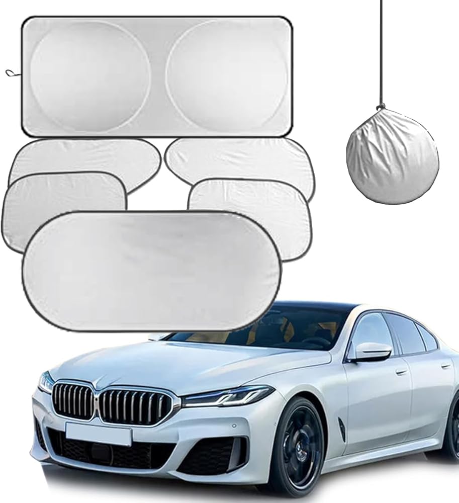 Keep your car cool and comfortable with this foldable sunshade designed for front windshields. Made from high-quality materials, this sunshade effectively blocks harmful UV rays and prevents your vehicle's interior from overheating. Its silver cloth construction reflects sunlight, providing superior heat insulation. When not in use, it conveniently folds for easy storage. With its universal size, this sunshade fits most cars and SUVs, ensuring a hassle-free installation process. Protect your car's upholstery and maintain a pleasant driving environment with this practical and efficient sunshade.