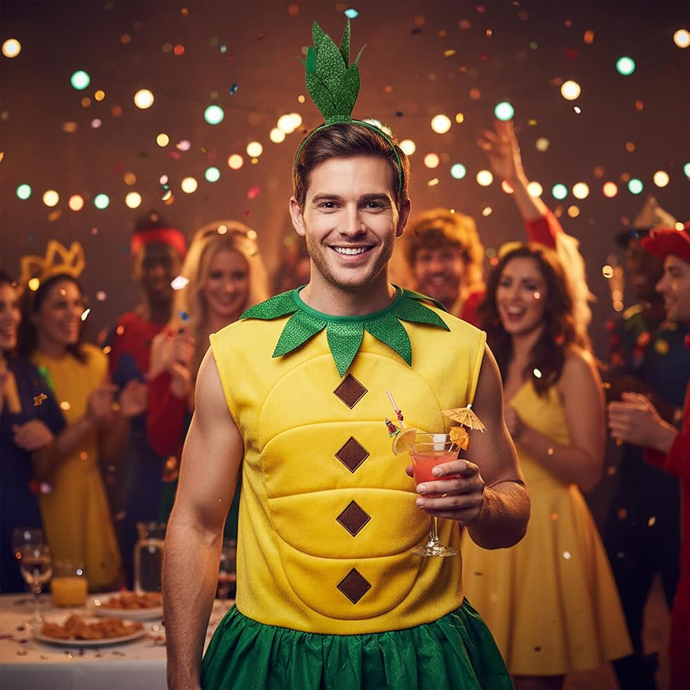 Add a whimsical touch to your outfit with this charming pineapple stalk glitter headband. Measuring 13.5 inches tall, this sparkly green crown-style accessory transforms you into a tropical vision. Perfect for costume parties, festivals, or any occasion that calls for a dash of fun, this hair accessory combines the playful appeal of pineapples with dazzling glitter details. The comfortable headband design makes it easy to wear while making a statement. Whether you're putting together a fruit-themed costume or simply want to add some sparkle to your ensemble, this pineapple crown headband delivers the perfect blend of pizzazz and personality. Its versatile size accommodates most adults, while the eye-catching design ensures you'll stand out in any crowd. Make your next celebration more memorable with this delightfully unique hair accessory.