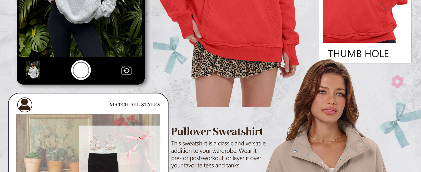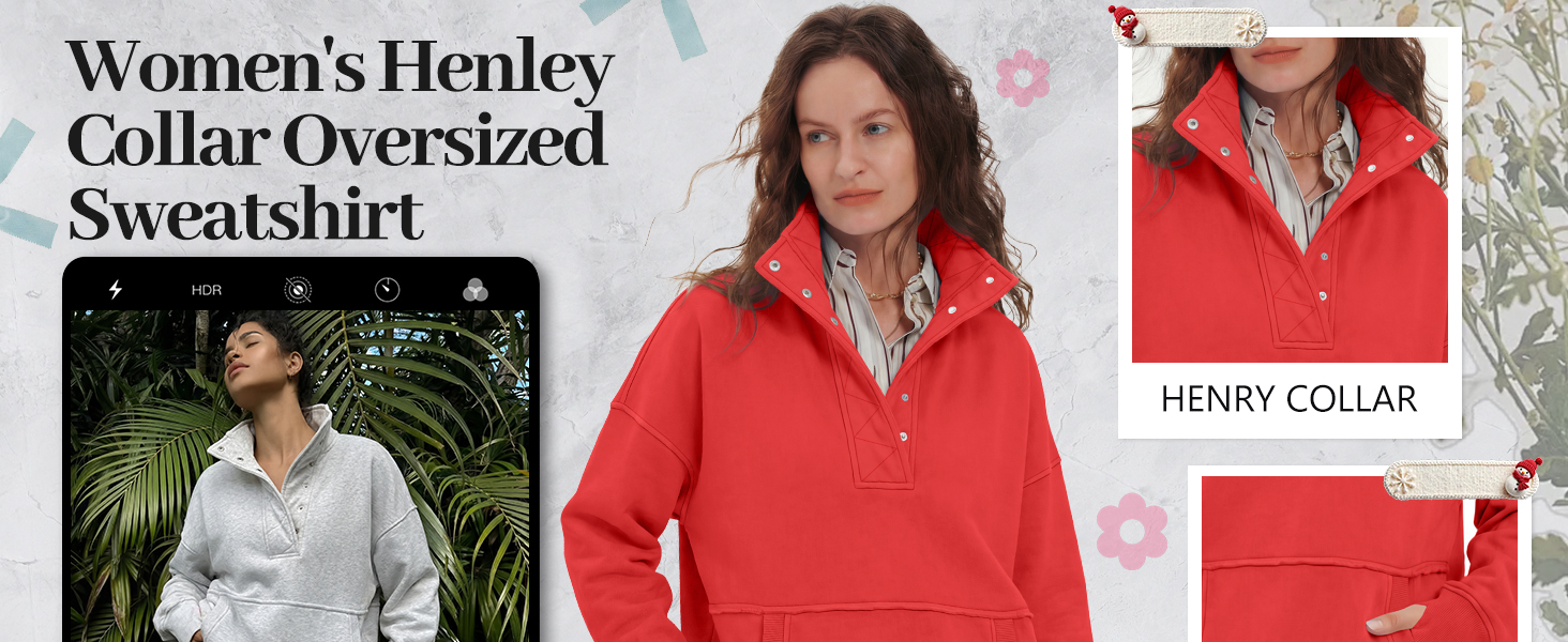 Design: Oversized sweatshirt for womens, women pullover sweatshirt, teen girls y2k clothes, kangaroo pockets, long sleeve with thumb holes, stand-up collar pullover, button front, ribbed cuffs hem, and ribbed pocket trim, aesthetic clothing, Y2K casual style.