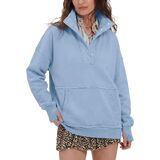 Your favorite femme henley sweatshirts, now featured in a chic kangaroo pocket silhouette. Check out our rich description for more details. Fit Type: Oversized, casual fit.