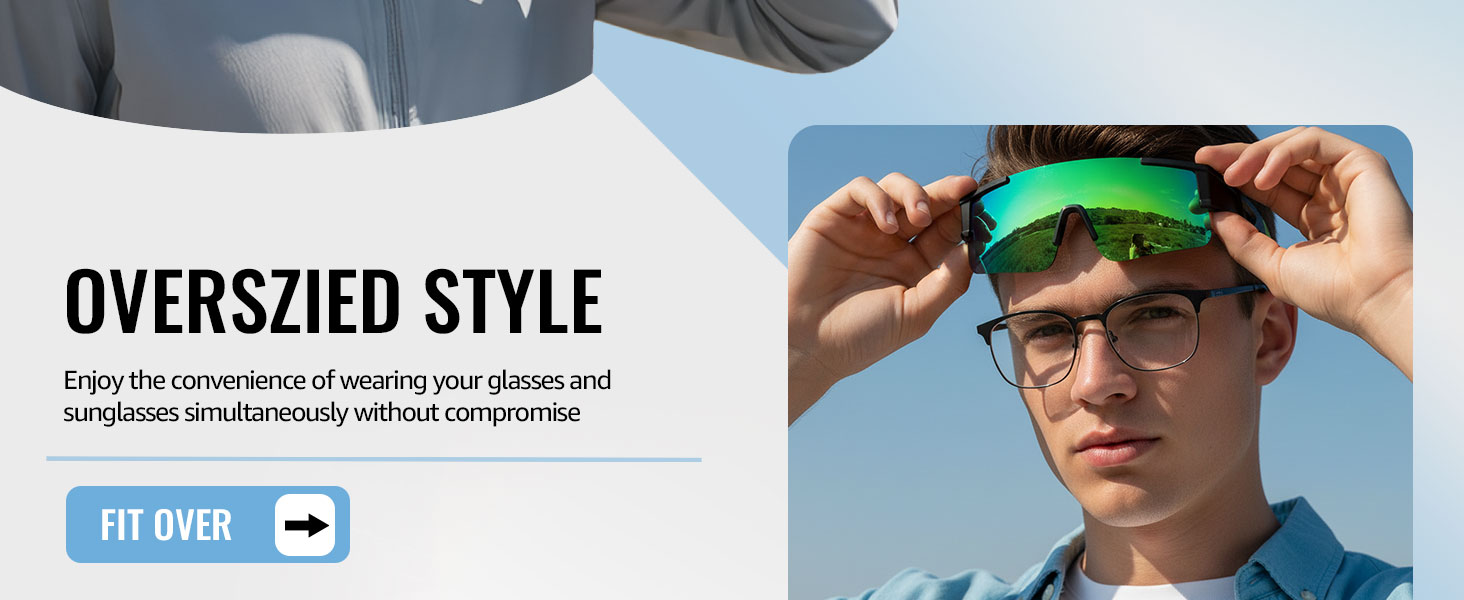 ATHLETIC FIT-OVER DESIGN: Built for active individuals who wear glasses, the one-piece lens fit-over design provides wide coverage, zero pressure points, and stable vision during running, cycling, and other outdoor activities