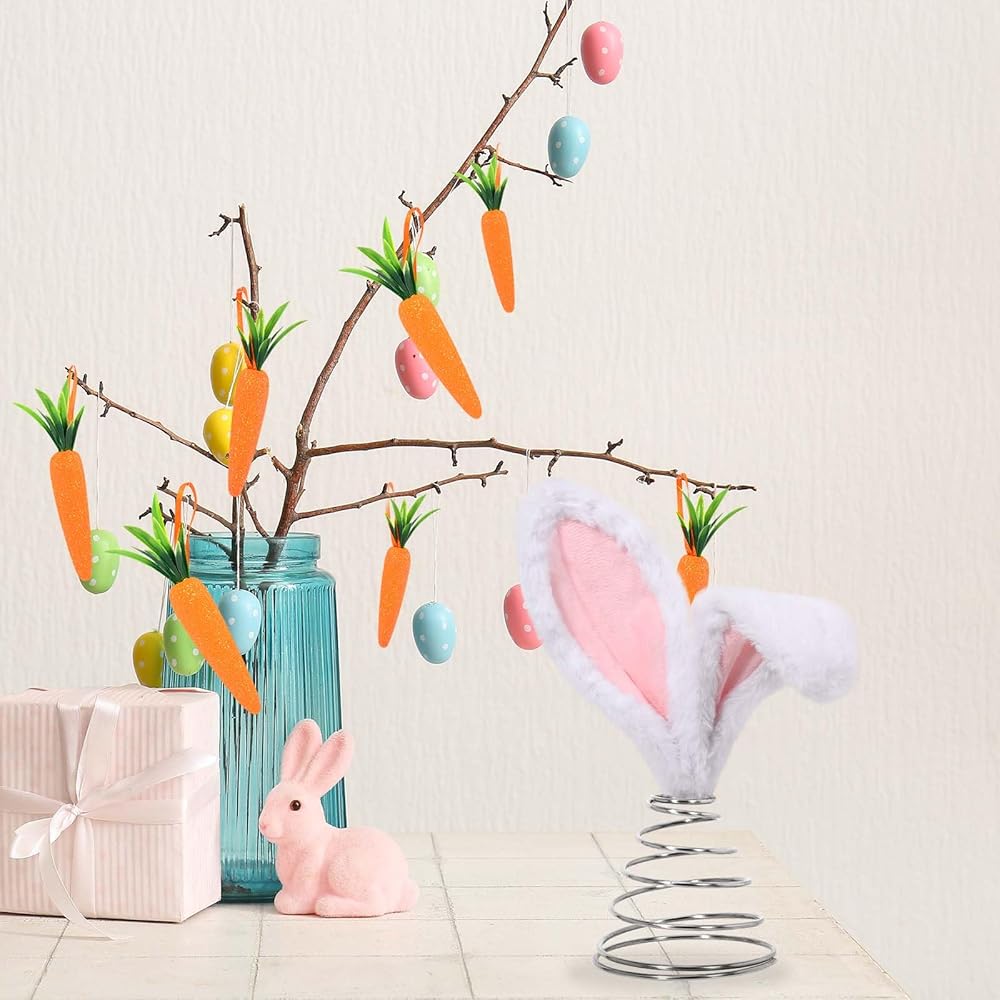 Package Include: You will receive 12 Easter artificial carrot ornaments and 1 white bunny ear tree topper. The ample quantity and adorable design are perfect for adding festive atmosphere to your Easter party.