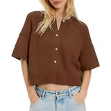 Design:The classic short sleeved round neck button and loose cut design create a relaxed and fashionable appearance. The ribbed hem adds a sense of layering to the garment, enhancing visual luxury while maintaining a slim and modern silhouette. The clean, minimalist design and high-quality structure ensure that it creates a versatile and timeless appearance