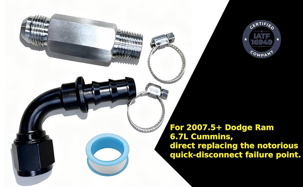【Applicable Model】:Direct Fit For 2007.5 + Dodge Ram 2500/3500/4000/4500/5500 6.7L Cummins, replacing the notorious quick-disconnect failure point.
