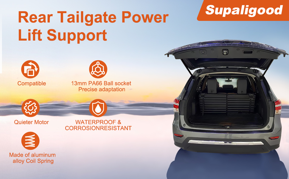 [ Quieter Motor ] The motor noise levels are less than 60 dB. Made of aluminum alloy Coil Spring. Trunk shocks are strong enough to lift up the lift gate. The combination of spring and motor not only makes the hatch open and closes quieter and smoother, provides a quiet and comfortable user experience but also extends the service life of the rear hatch shocks