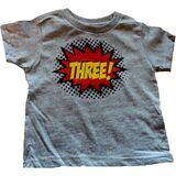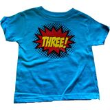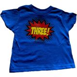 This "Three" 3rd birthday superhero t-shirt is the perfect outfit for the birthday boy! 100% cotton, machine washable and printed in the USA!