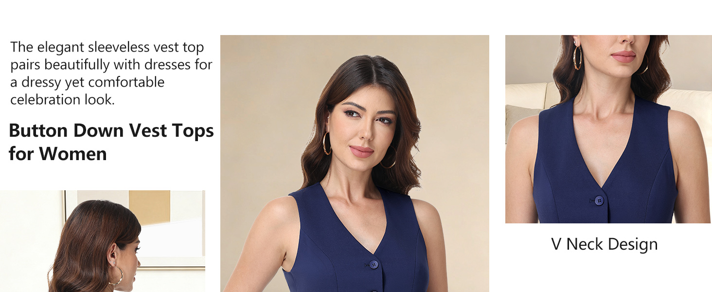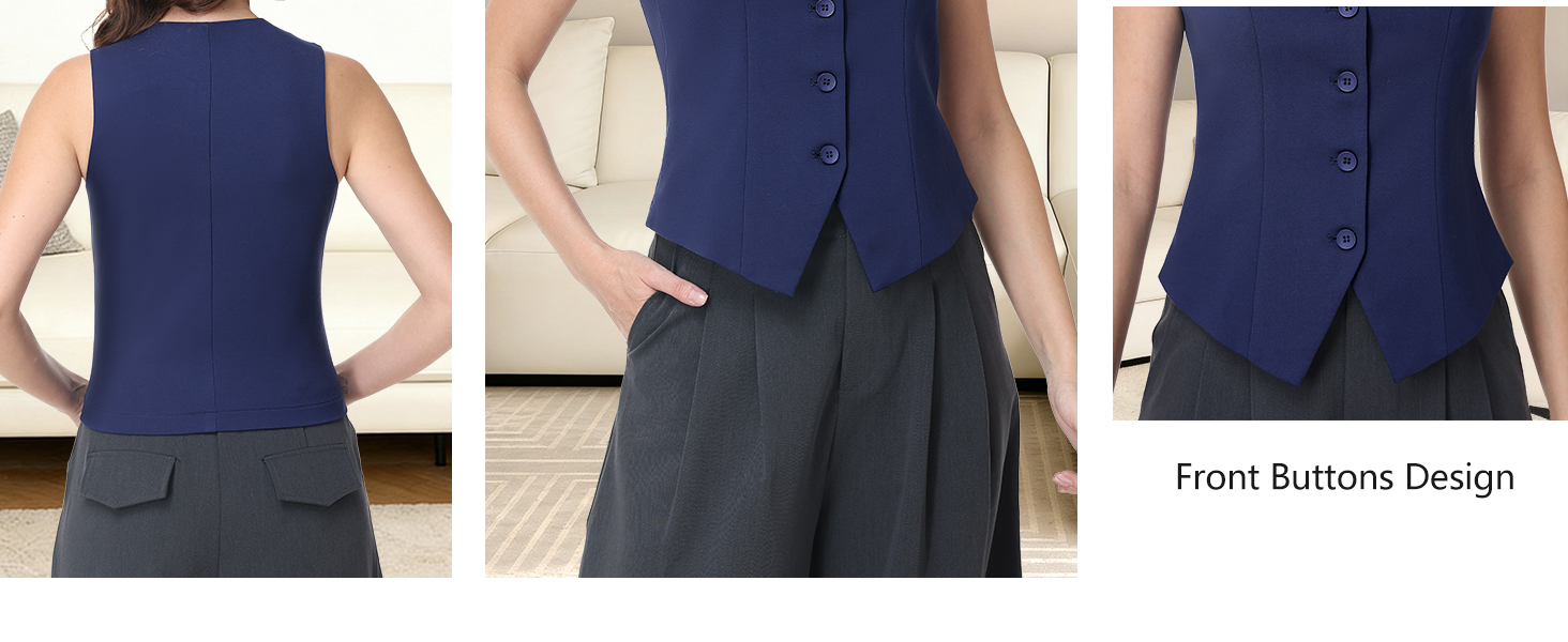 Chic Silhouette: The slim-cut women vest top highlights your silhouette with elegant front and back paneling. It delivers a trendy look that elevates your outfit, whether for work, school, or leisure.