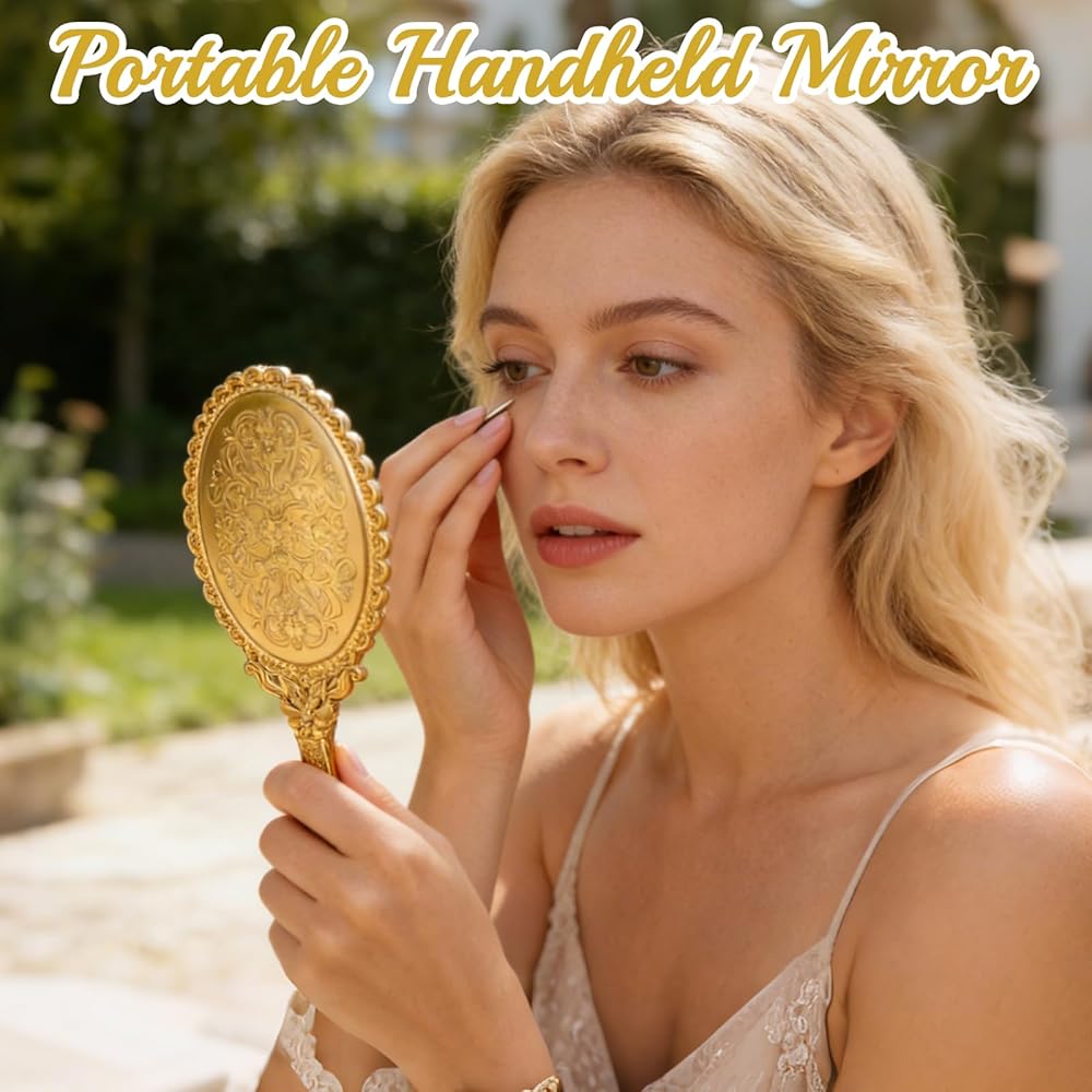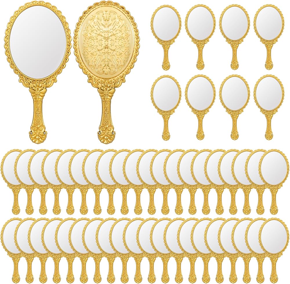 This 48-pack of vintage handheld mirrors features gold embossed floral designs with sturdy handles for easy use. Compact and portable, they provide a crystal-clear reflection for makeup, skincare, or styling. Perfect as party favors, classroom gifts, or elegant accessories for women on the go.