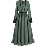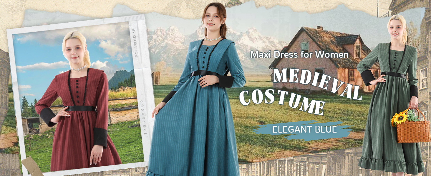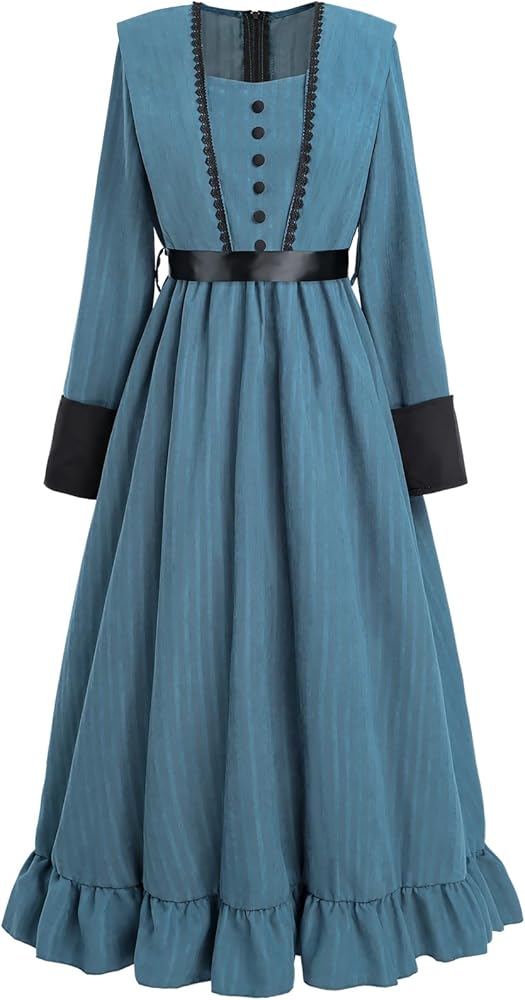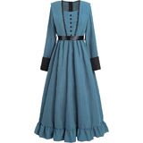 【Style】The women's victorian costume has particular designs on the shoulders and cuffs. The victorian dress is embellished with black lace trim on the chest for an elegant and charming look. The ruffled hemline of the renaissance dress is vintage and cute