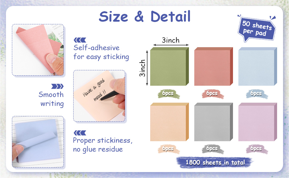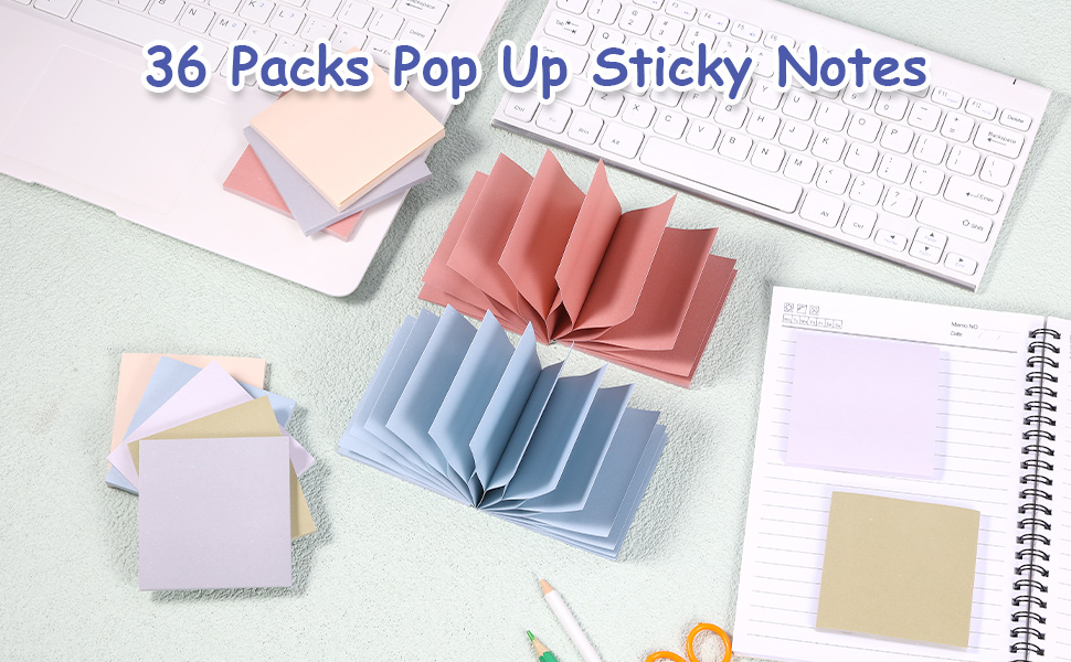 【36 Pack Pop Up Sticky Notes Bulk】: You will receive 36 pads pop up sticky notes 3x3 refills in 6 vintage colors, each color in 6 pads, 50 sheets/pad, total 1800 sheets, enough quantity for you to use for long time or share with others. Each morandi sticky note measures 3x3 inch, perfect size for using