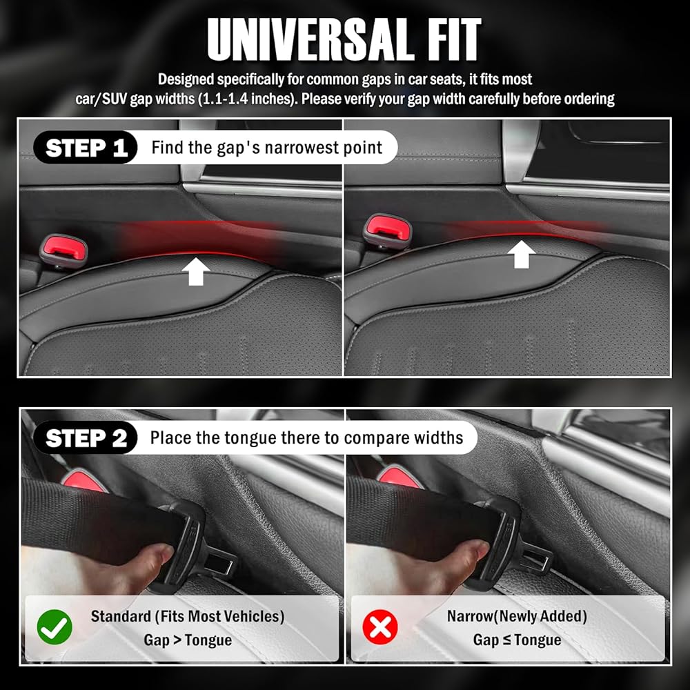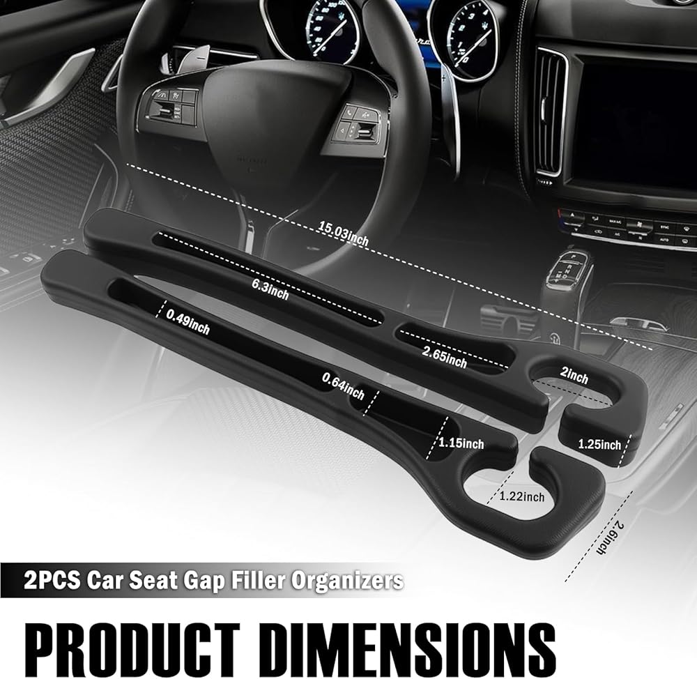 • Universal Fit: The seat gap filler organizer measures 15.03 x 2.6 x 1.25 inches and includes 2 pieces per package. Designed specifically for common gaps in car seats, it fits most car/SUV gap widths (1.1-1.4 inches). Please verify your gap width carefully before ordering