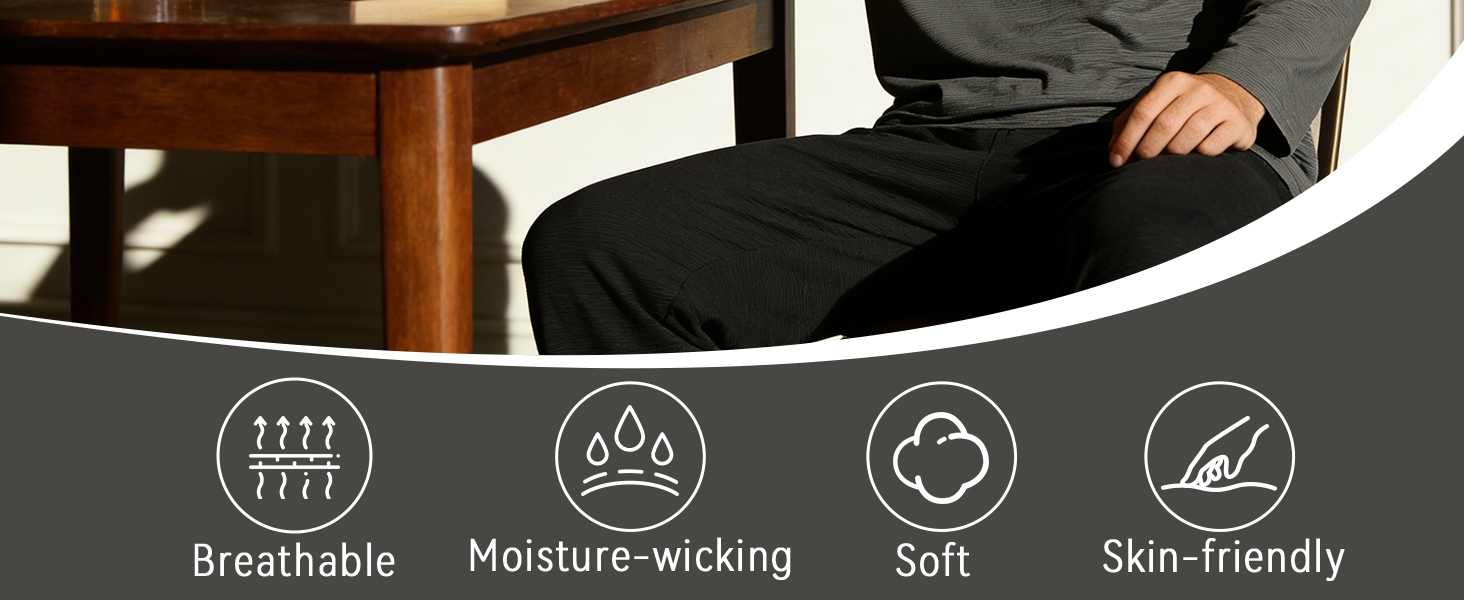 Breathable Striped Fabric: This men's pajama set features a CR striped jacquard design with a more refined look than ordinary prints. The lightweight, breathable, and moisture-wicking fabric helps keep you cool, dry, and comfortable for sleep or lounging