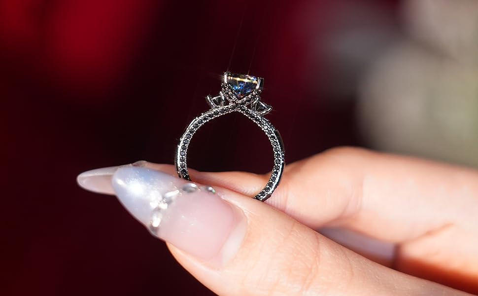 Durable Metal: The black engagement ring is made from high-quality 925 sterling silver plated with black metal, ensuring long-lasting durability, no fading, and a shiny surface that withstands daily wear. It is lead-free, nickel-free, and suitable for sensitive skin
