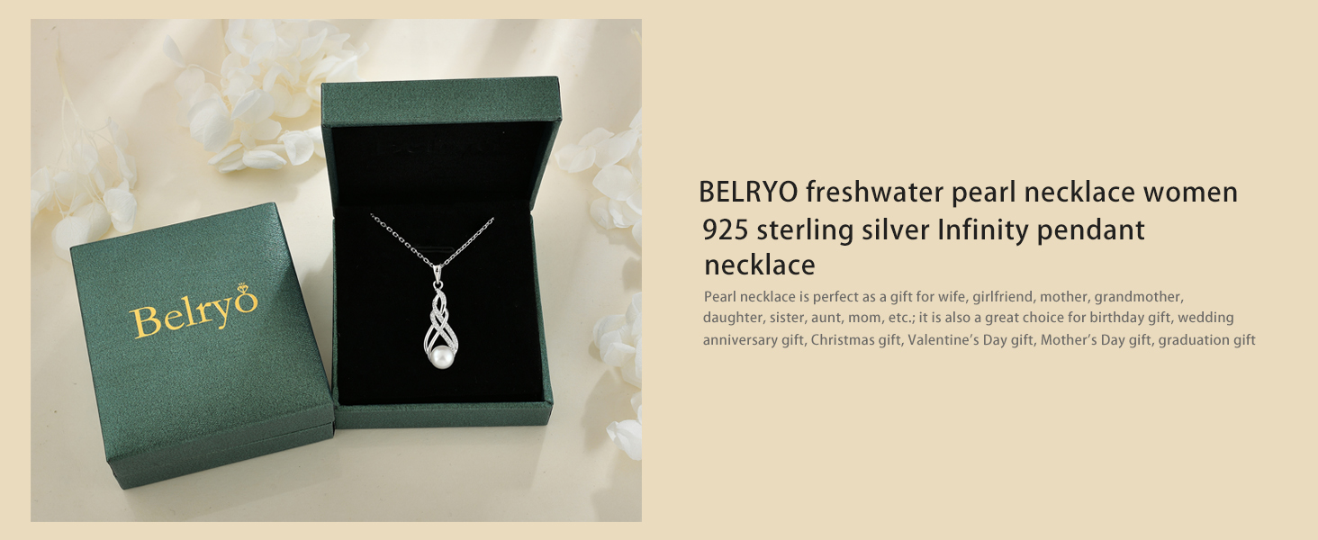 BELRYO Gifts For Women Wife Valentine's Day Anniversary, Pearl Necklace For Women 925 Sterling Silver Infinity Pendant, Mothers Day Necklace Ideas Birthday 7MM Freshwater Cultured Pearl Jewelry