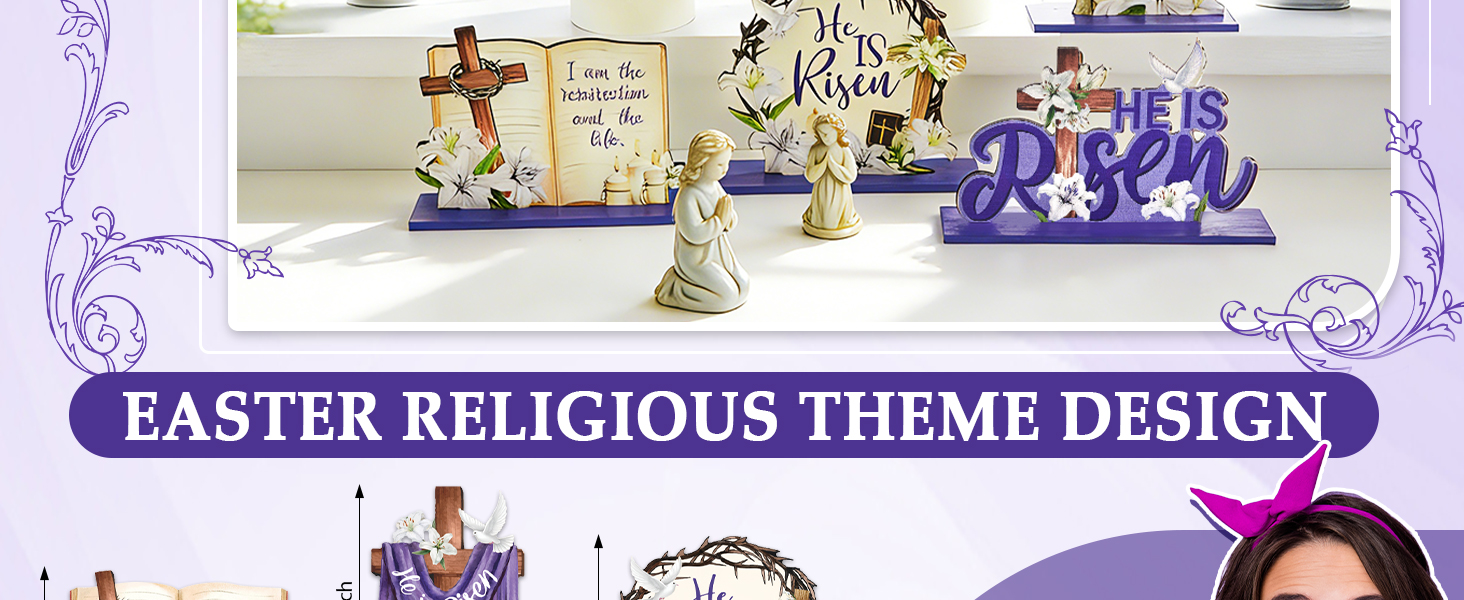 Premium quality: These Easter wooden tabletop decorations are made of premium wood, offering a sturdy structure, fine craftsmanship, and vibrant, long-lasting colors. The religious wooden table decorations centerpieces are easy to assemble and disassemble, making them a wonderful choice for repeated use throughout the holiday season.