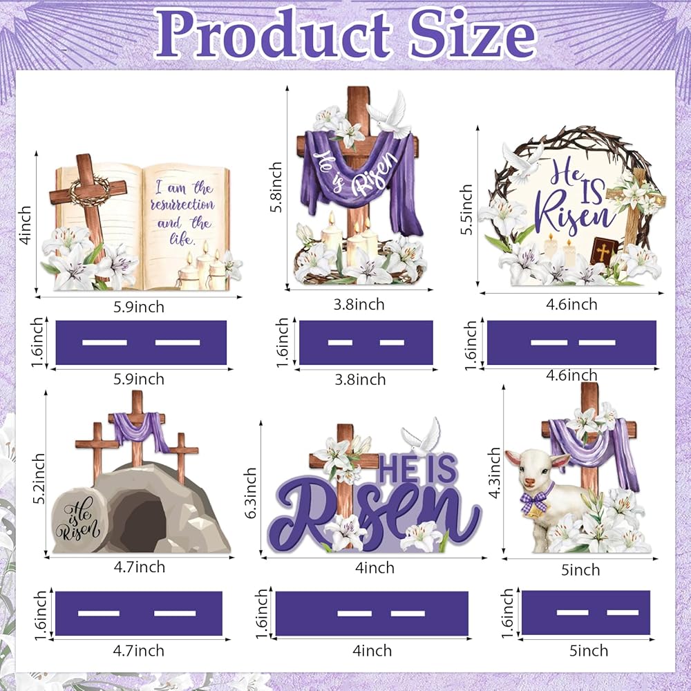 Easter table decorations set: You'll get 6 pieces of Easter religious wooden table signs and 6 sturdy wooden bases. These rustic Jesus cross wood table centerpieces are well-sized for use as Easter table decorations or tiered tray decor, adding a touch of faith to your holiday celebration.