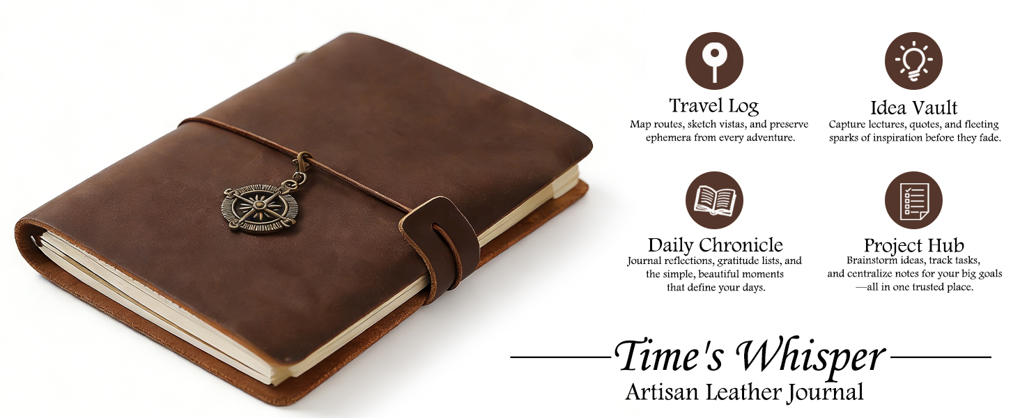 【A Premium Gift of Thoughtfulness】 From the thick paper to every accessory, we pursue perfection. This fusion of a leather notepad and traveler notebook is the perfect gift for travelers, creators, and anyone who cherishes life.