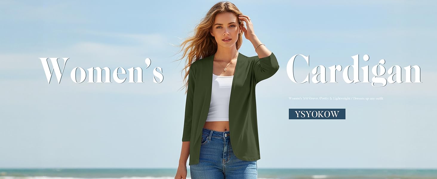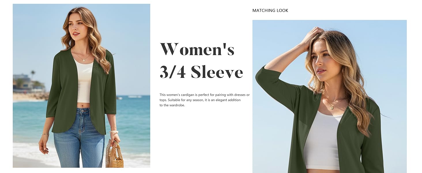 EYE-CATCHING DESIGNS: 3/4 sleeve cardigan for women / open front lightweight cardigan / curved hem hip-length cardigan / dressy office cardigan / thin layering piece / summer cover up / business casual