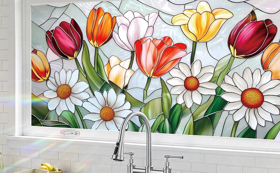 PRIVACY DESIGN: Beautiful floral and leaf pattern provides an elegant decorative touch while maintaining privacy, perfect for bathrooms, offices, and living spaces