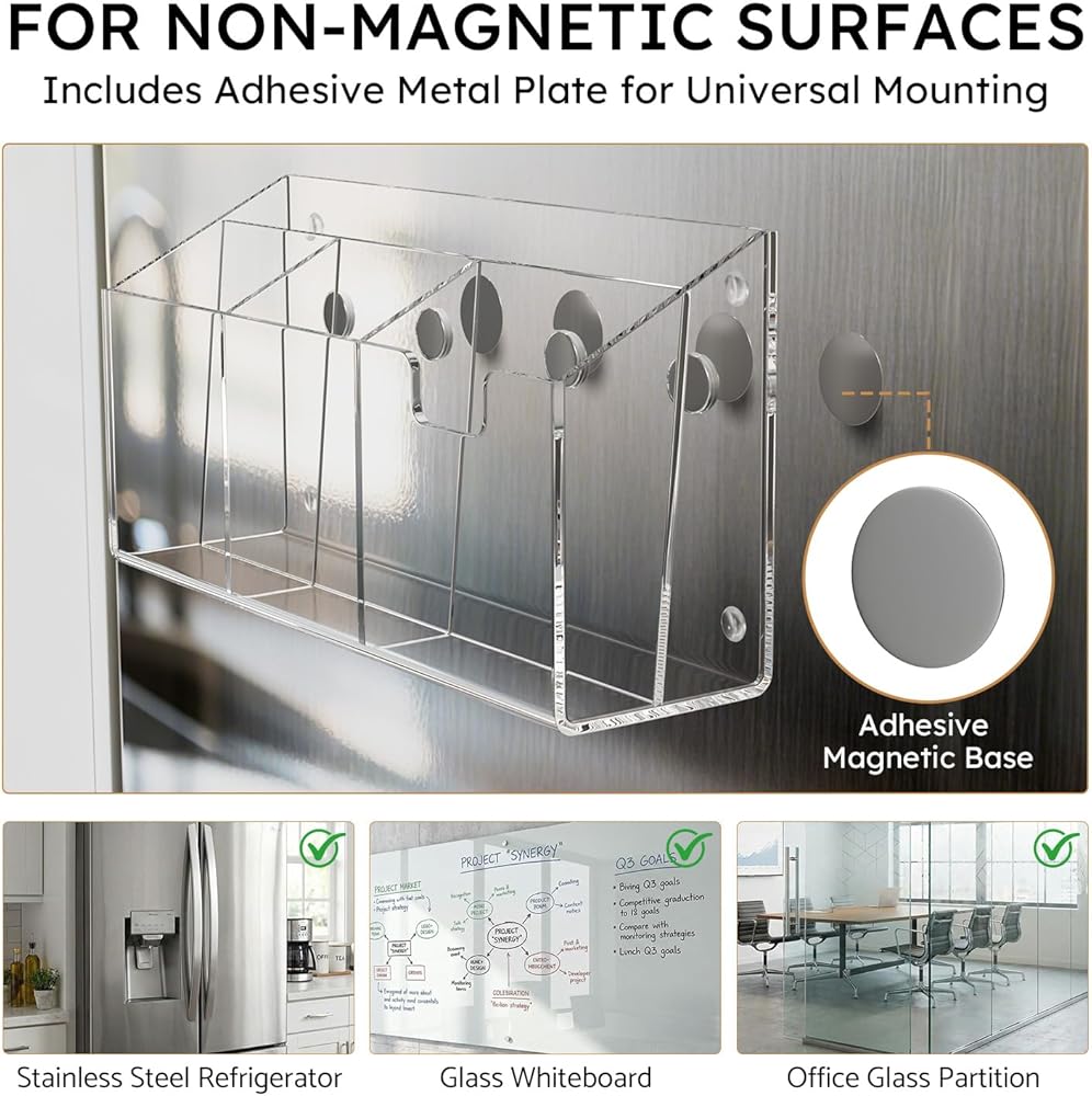 【Versatile Mounting + Gift Ready】Instantly mounts on refrigerators or lockers. Includes FREE adhesive metal plates for use on walls or desks. As a teacher desk organizer or a locker accessory, it's the ultimate practical gift. Backed by our commitment to your satisfaction.