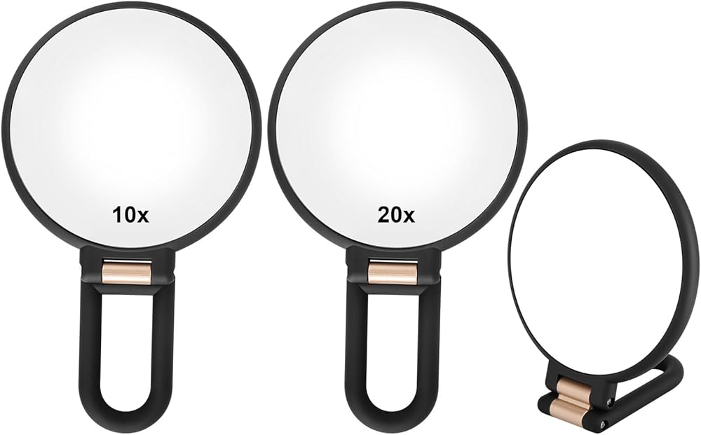 2 Pack 10X 20X Magnifying Handheld Mirror Travel Makeup Mirror