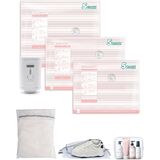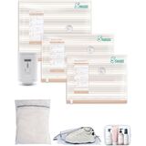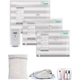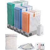 18-Piece Perfect Travel Kit: Includes 18 vacuum bags in 3 sizes (15.7×19.7in, 15.7×23.6in,19.7×23.6in), each size featuring a distinct color for quick identification. The added shoe bag, laundry(dirty) bag, and toiletry bag help you maintain an organized packing system throughout your journey.
