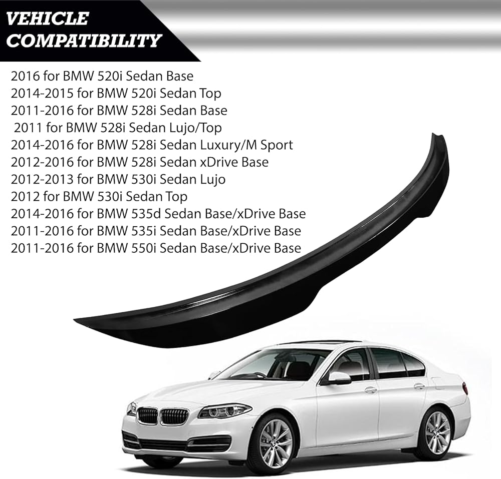 Rear Spoiler Wing Compatible with for BMW 5 Series F18/F10 2011-2016 for BMW 528i Sedan Base 2011-2016 for BMW 535i Sedan Base 2014-2016 for 528i Sedan Luxury Gloss Black Rear Trunk Spoiler