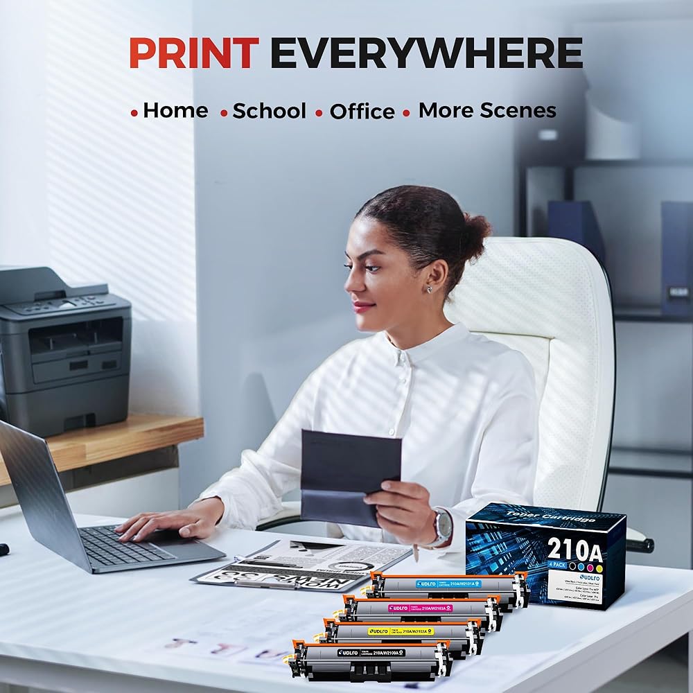 High Page Yield: up to 2,000 pages per 210A black toner cartridge W2100A, up to 1,800 pages per for HP 210a toner cartridges color W2101A W2102A W2103A (C/Y/M) at 5% coverage, replacement for hp210a toner cartridges 4 pack