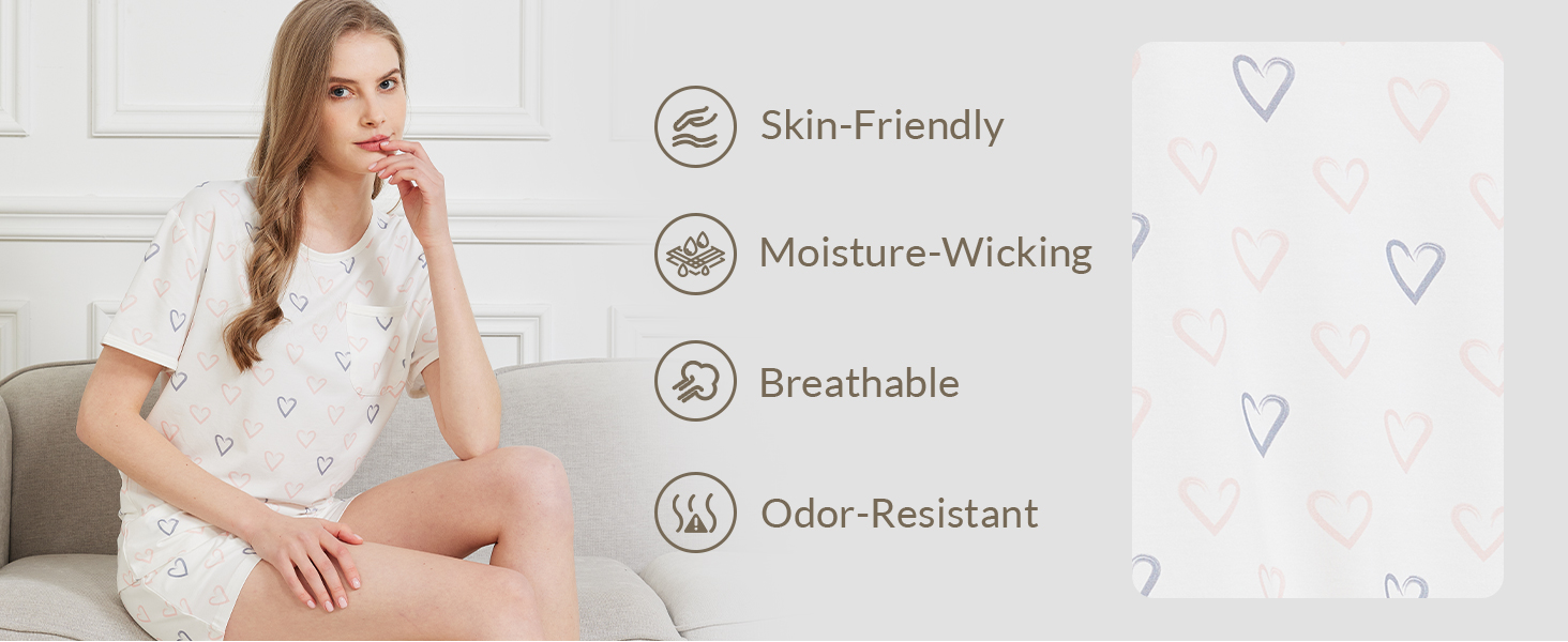 Advanced features: The bamboo viscose pajamas for women offer odor resistance, moisture-wicking properties, and a cool to the touch feel, ensuring you stay fresh during summer nights