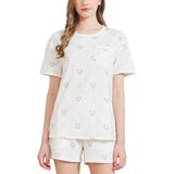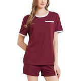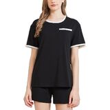 Two-piece pjs sets: Relaxed-fit pajama set is available in solid colors and cute prints. The sleep shirt features a round collar and a chest pocket, while the shorts have a stretchy elastic waistband and two deep side pockets for added functionality