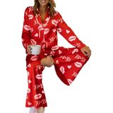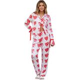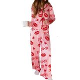 Women Heart Print Pajama Set Long Sleeve Button-up Tops and Pants 2 Piece Valentines Day Sleepwear Outfit