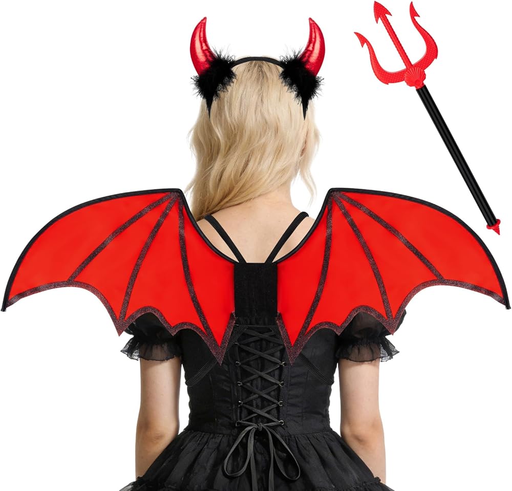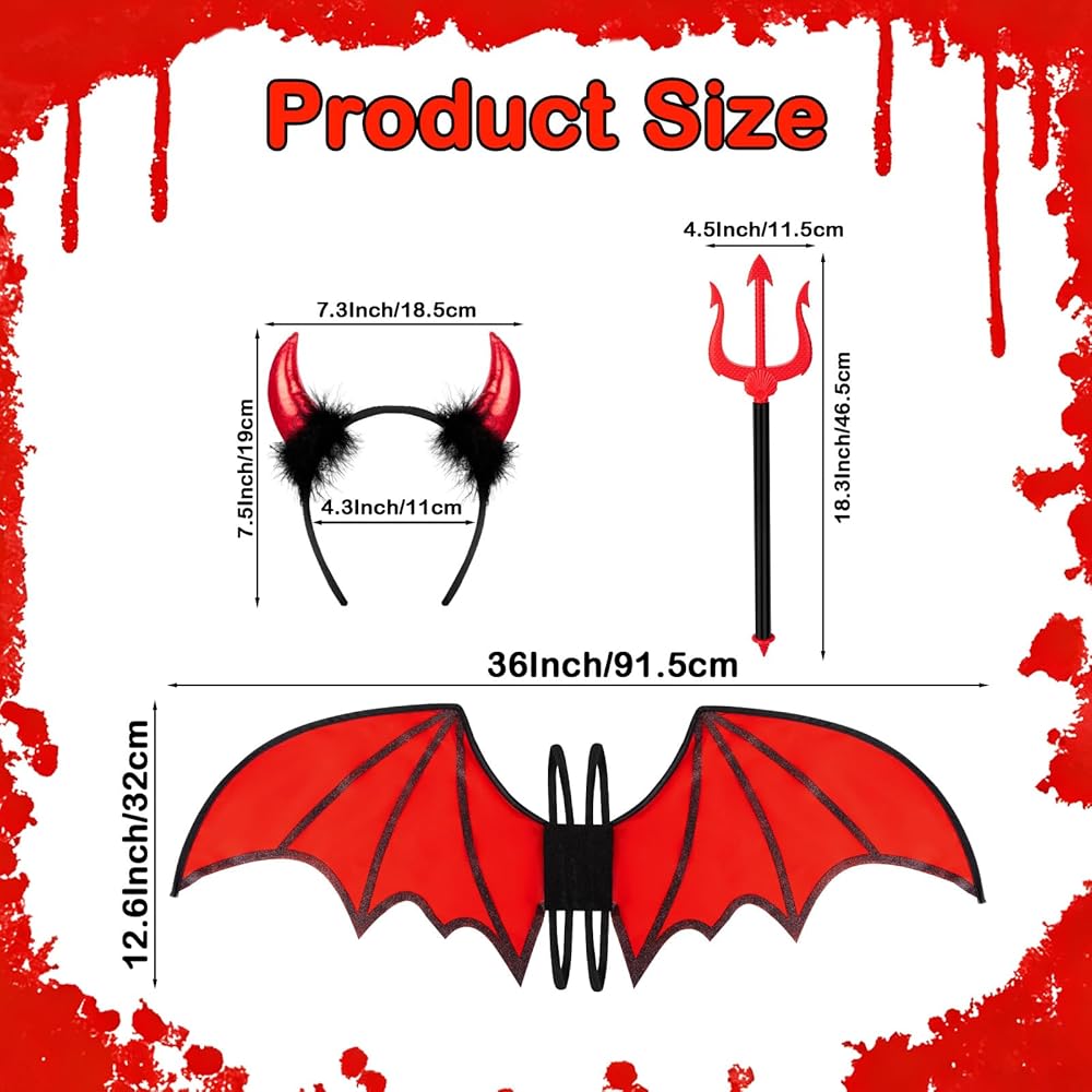 【Perfect Halloween Costume】3pcs devil costume accessory set featuring devil wings, a devil headband,and a devil pitchfork.Whether for Halloween party,devil themed party,costume balls, carnivals,or themed bar events,this set has you covered for all your costume needs.